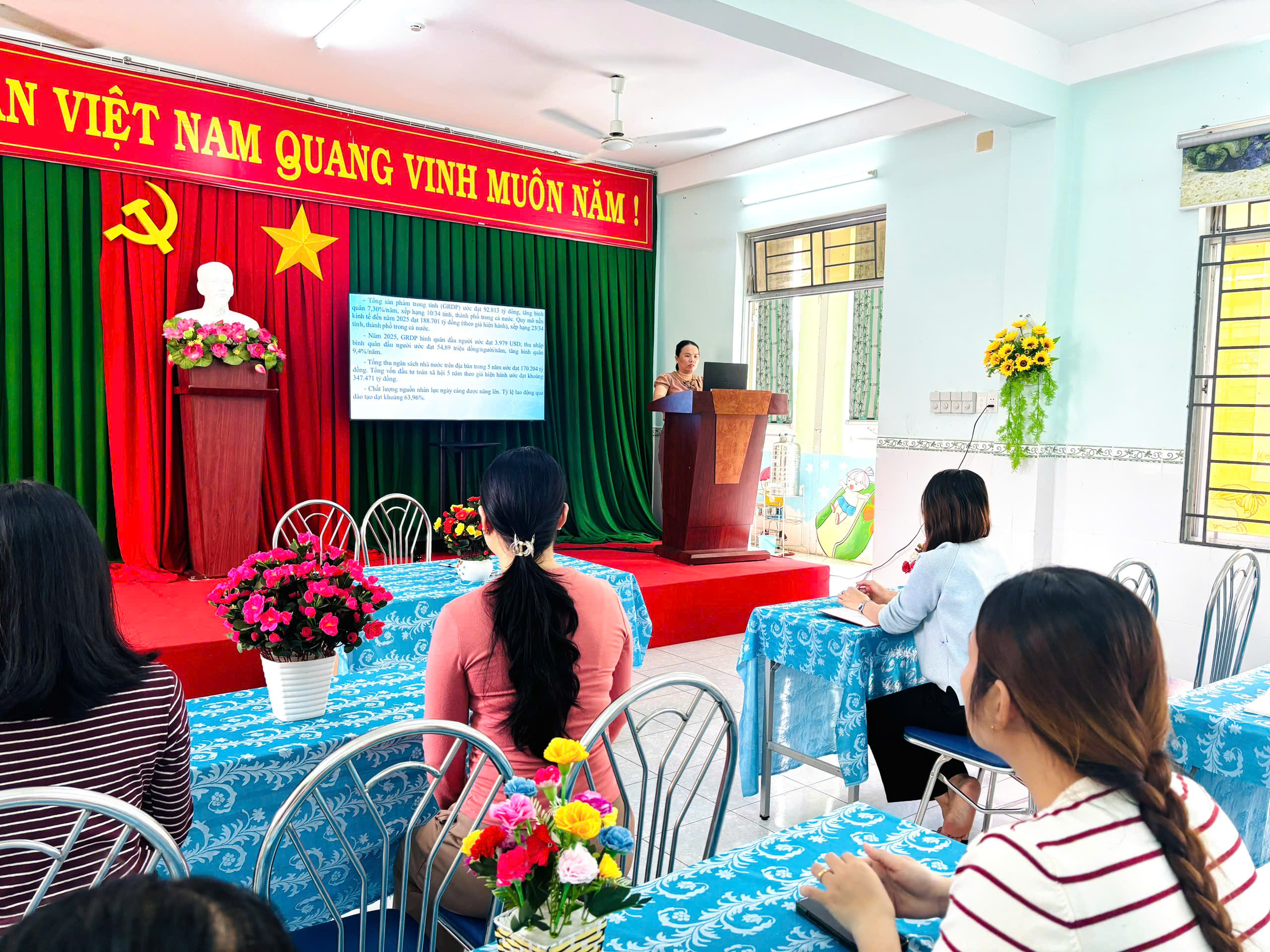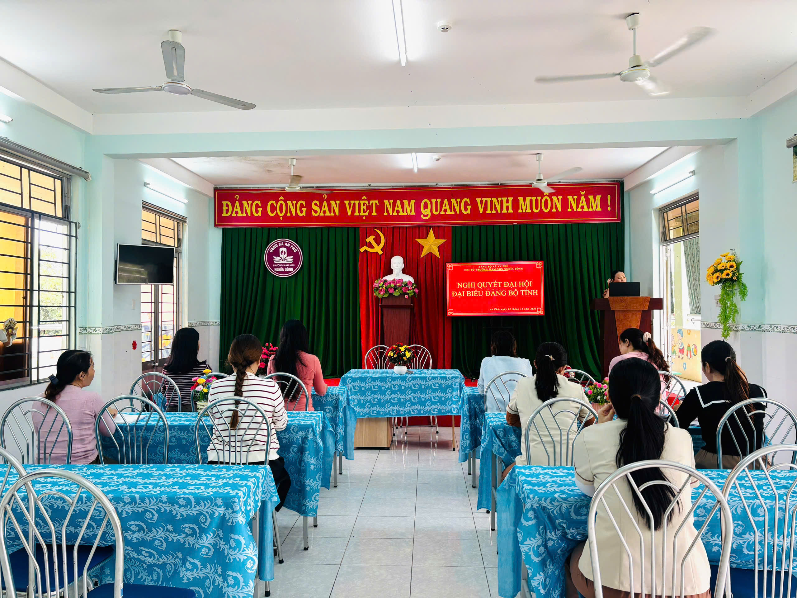 Thực hiện kế hoạch số 16-KH/ĐU ngày 11/11/2025 của BTV Đảng ủy xã An Phú về việc tổ chức học tập, quán triệt, tuyên truyền Nghị quyết Đại hội đại biểu Đảng bộ tỉnh Quảng Ngãi lần thứ I, nhiệm kỳ 2025–2030, Chi bộ Trường Mầm non Nghĩa Dõng đã tổ chức buổi học tập, quán triệt Nghị quyết Đại Hội Đại Biểu Đảng Bộ Tỉnh đến toàn thể đảng viên vào ngày 04/12/2025.