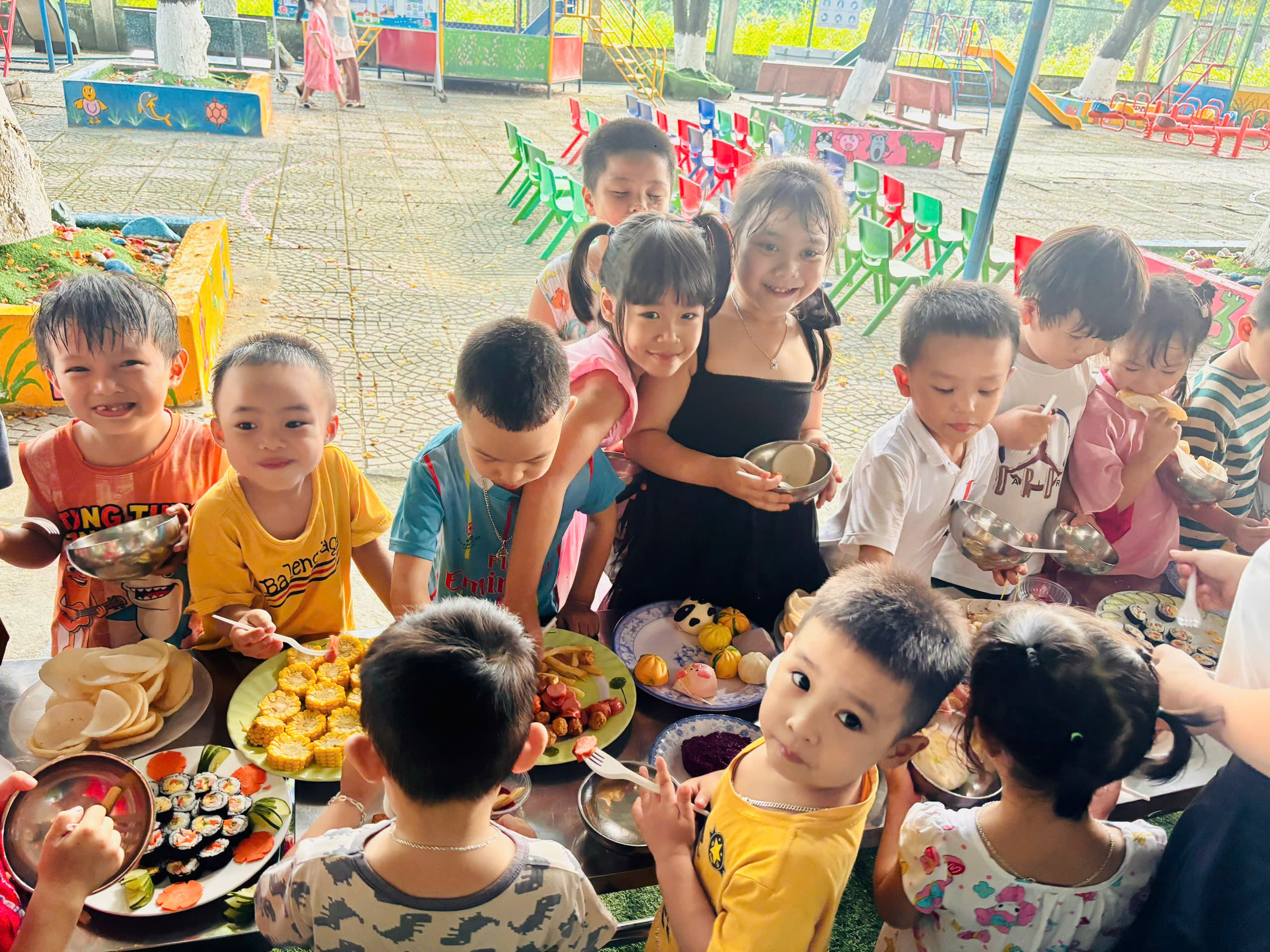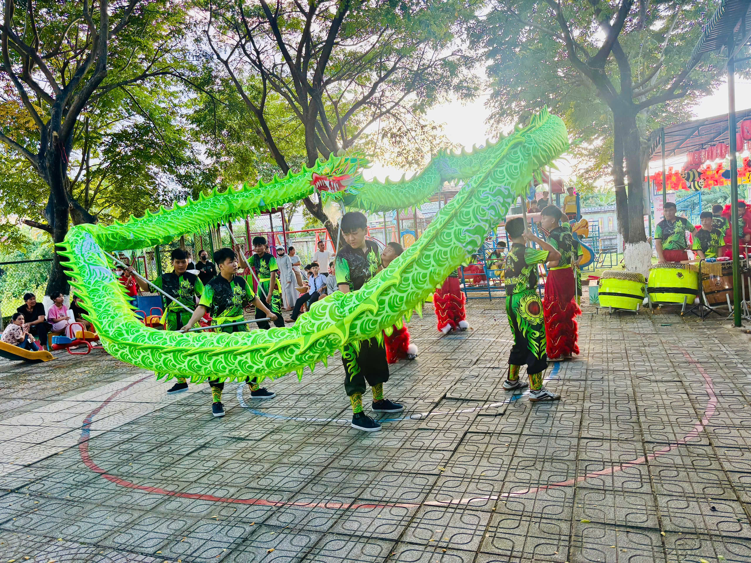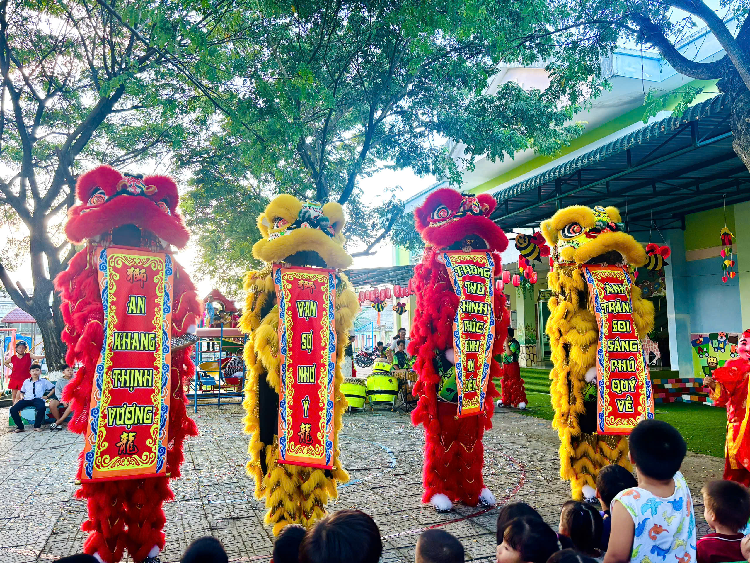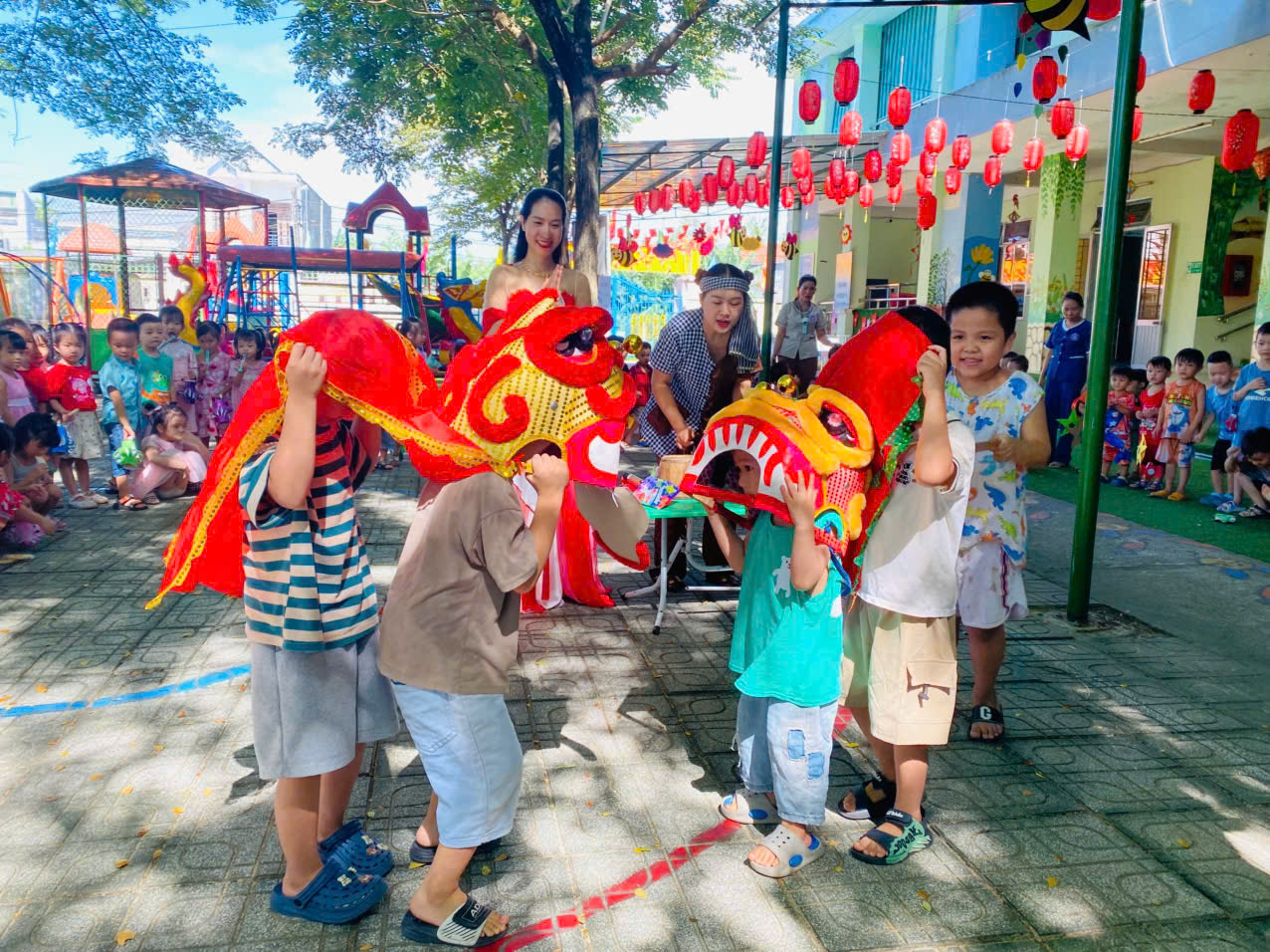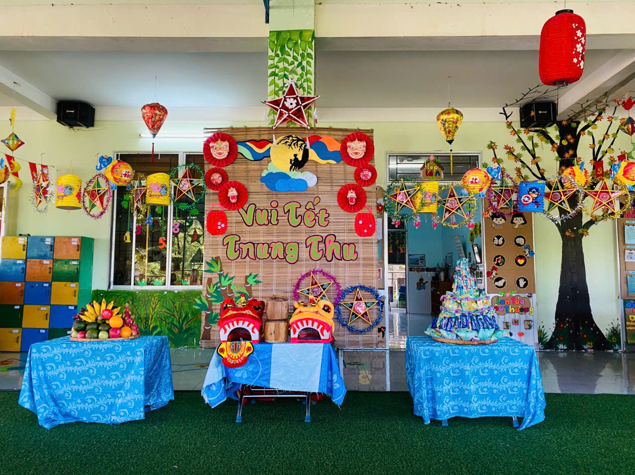 Đã thành thông lệ, cứ mỗi dịp Tết Trung thu, nhà trường lại tổ chức chuỗi các hoạt động ý nghĩa, hấp dẫn tạo không khí vui tươi phấn khởi cho các em học sinh. Tại chương trình “Vui tết Trung thu” năm nay, với sự chuẩn bị chu đáo của các cô, các bé được hòa mình vào không khí trung thu với sắc màu rực rỡ của những chiếc đèn lồng, đèn ông sao, mâm ngũ quả, hình tượng chị Hằng, chú Cuội. Được tham gia rước đèn Trung thu, được nhận nhiều phần quà ý nghĩa, được thưởng thức tiệc buffet và đặc biệt là xem chương trình múa lân nghệ thuật đầy hấp dẫn.
